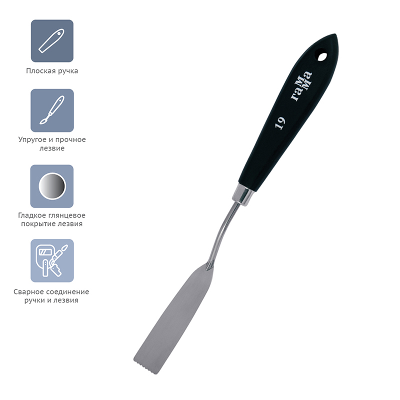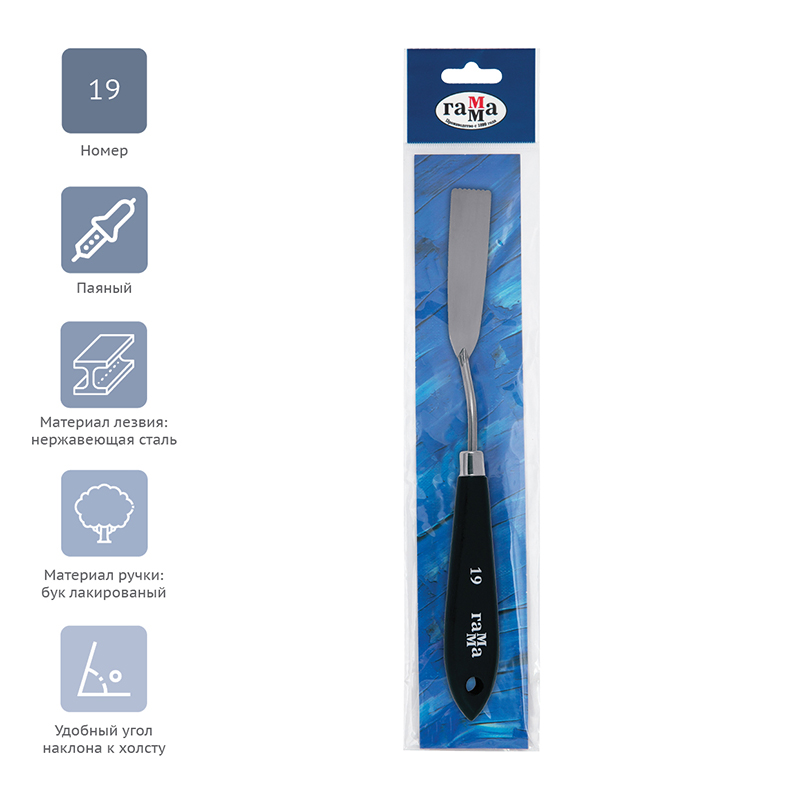 Паяный мастихин из нержавеющей стали с удобной плоской ручкой из натурального бука. Сварное соединение ручки и лезвия дает больший угол наклона мастихина к холсту, снижая вероятность случайного касания и смазывания краски.<br/>Форма лезвия — ромб.<br/>размер рабочей поверхности мастихина-68мм*17мм