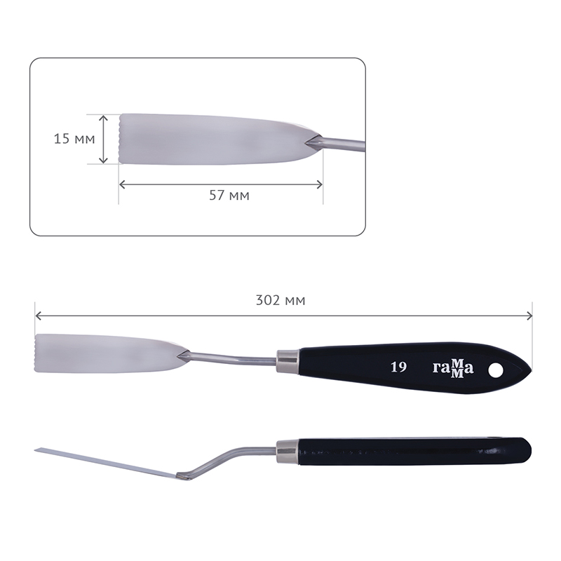 Паяный мастихин из нержавеющей стали с удобной плоской ручкой из натурального бука. Сварное соединение ручки и лезвия дает больший угол наклона мастихина к холсту, снижая вероятность случайного касания и смазывания краски.
