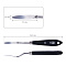 Паяный мастихин из нержавеющей стали с удобной плоской ручкой из натурального бука. Сварное соединение ручки и лезвия дает больший угол наклона мастихина к холсту, снижая вероятность случайного касания и смазывания краски.