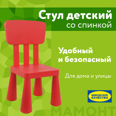 Стул детский со спинкой МАМОНТ красный, от 2 до 7 лет, безвредный пластик, 01.002.01.05.1