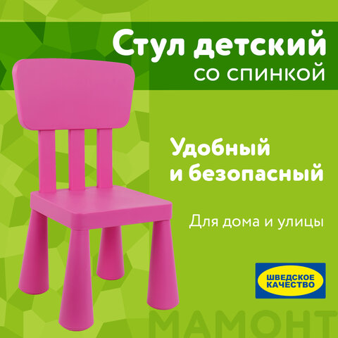 Стул детский со спинкой МАМОНТ розовый, от 2 до 7 лет, безвредный пластик, 01.002.01.12.1