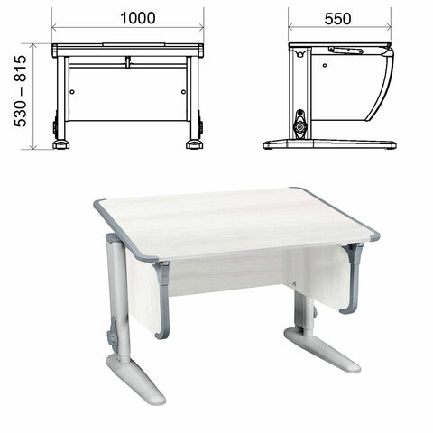 Стол-парта регулируемый "ДЭМИ" СУТ.43, 1000х550х530-815 мм, серый каркас, пластик серый, рамух белый (КОМПЛЕКТ)