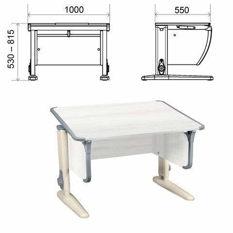 Стол-парта регулируемый "ДЭМИ" СУТ.43, 1000х550х530-815 мм, бежевый каркас, пластик серый, рамух белый (КОМПЛЕКТ)