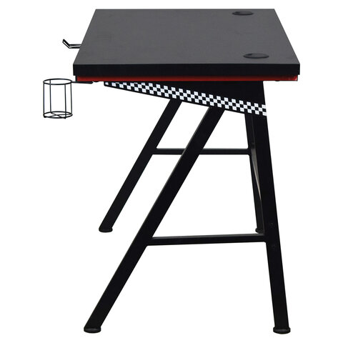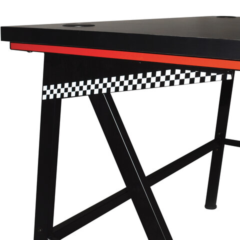 Интересным акцентом являются контрастные детали, подчеркивающие геймерский стиль стола.