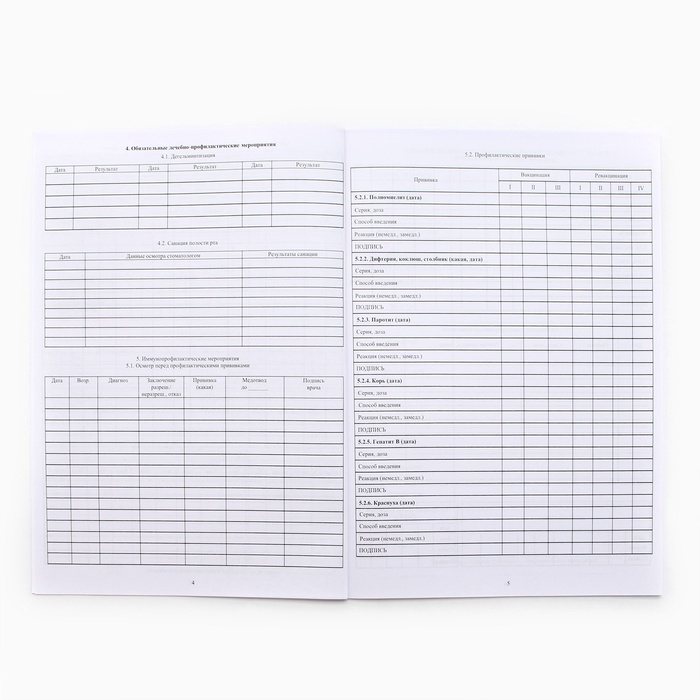 Сертификат о профилактических прививках А6, 12 листов, форма 156/у-93