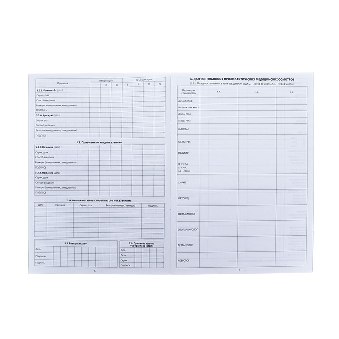 Сертификат о профилактических прививках А6, 12 листов, форма 156/у-93