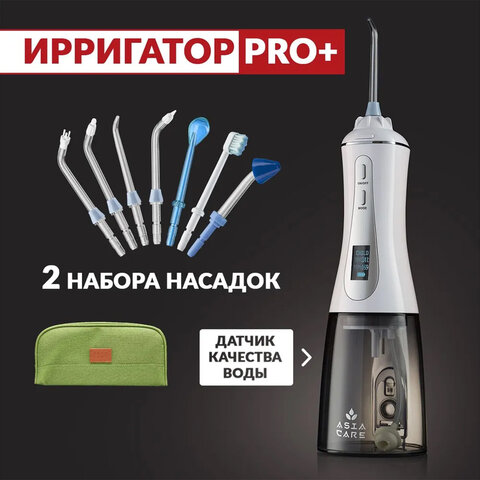 Ирригатор для полости рта ASIACARE PRO+, портативный, емкость резервуара 0,35 л, 14 насадок, белый, Asia_30