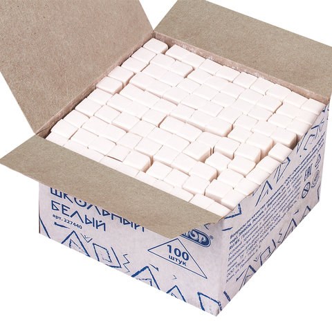 Мел белый БЕЗ ПРИМЕСЕЙ квадратный 100 штук, мягкое письмо, ПИФАГОР, картонная упаковка, 274123