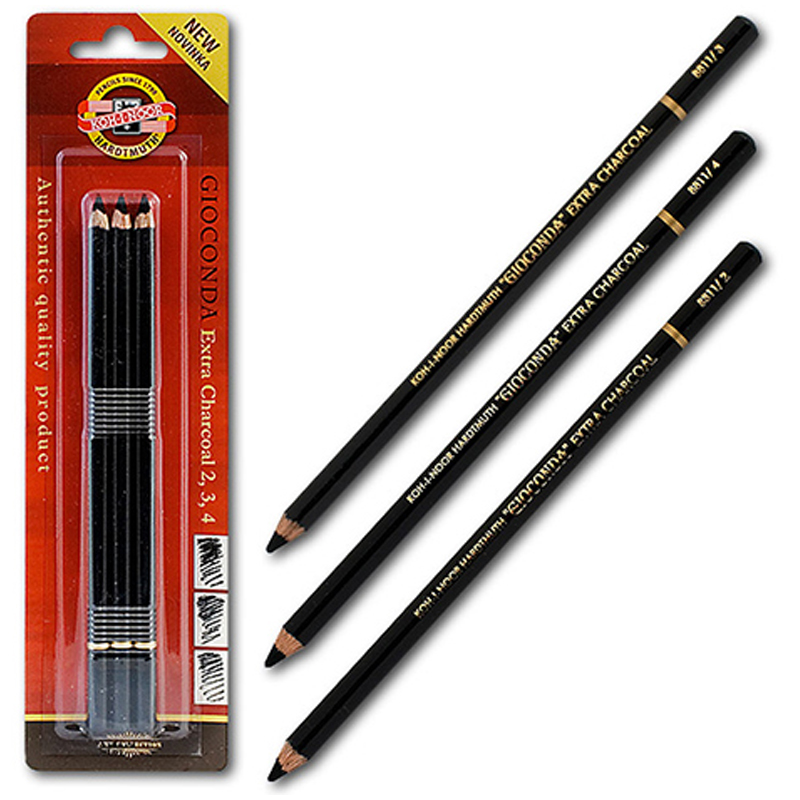 Уголь художественный искусственный в карандаше Koh-I-Noor "Gioconda Extra 8811", B-H, 3шт, блистер