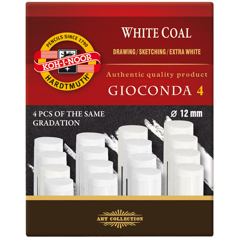 Уголь для рисования Koh-I-Noor "Gioconda 8692" 4шт., белый, 2B, 75мм, Ø12мм, картон. упаковка
