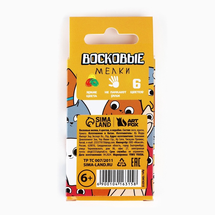 Восковые мелки, 6 цветов ТМ Артлавка