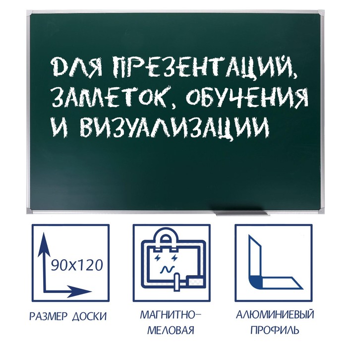 Доска магнитно-меловая, 90х120 см, ЗЕЛЁНАЯ, Calligrata СТАНДАРТ, в алюминиевой рамке, с полочкой