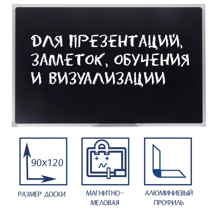 Доска магнитно-меловая, 90х120 см, ЧЁРНАЯ, Calligrata СТАНДАРТ, в алюминиевой рамке, с полочкой