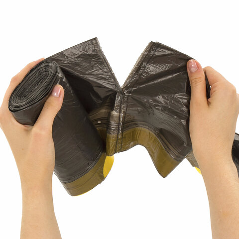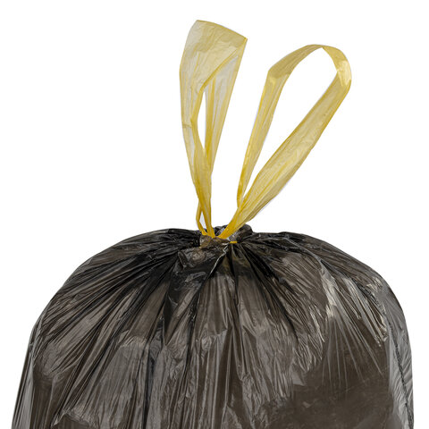 Изготовлены из полиэтилена низкого давления (ПНД) плотностью 10 микрон и имеют объем 30 литров. Размер мешка - 45х57 см (±5%). Поставляются в рулоне по 30 штук. Преимуществами данных мешков для мусора являются: высокая грузоподъемность и завязки для более удобного использования.