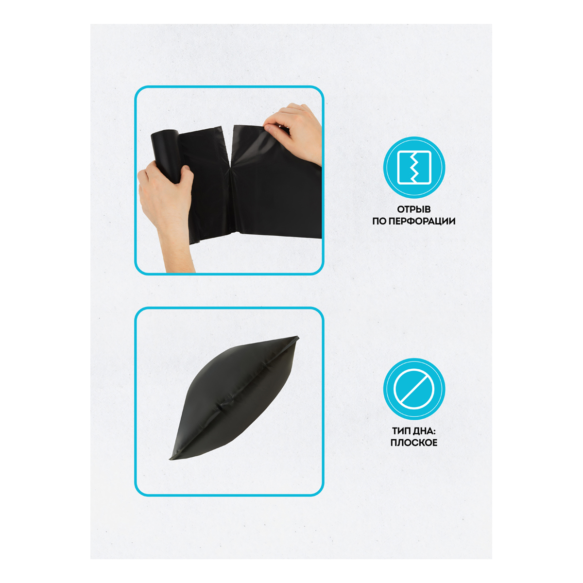 Мешки для мусора 60л Mirpack "Standart" ПНД, 60*70см, 6мкм, 30шт., черные, в рулоне