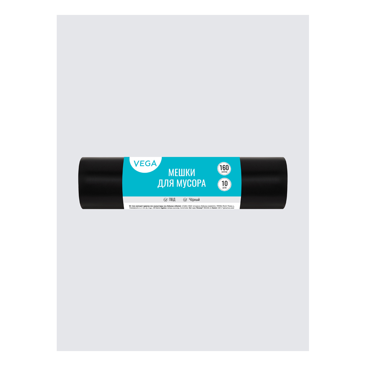 Мешки для мусора VEGA производятся из полиэтилена высокого давления (ПВД). Мешки объемом 160 литров размера 80*106 см плотностью 20 мкм используются для хозяйственных, промышленных нужд. В рулоне 10 штук. <br/>ПВД – химически нейтральный материал, не шуршит, имеет красивую блестящую поверхность и не подвержен воздействию жиров и кислот. Имеет большую разрывную нагрузку, полотно плотнее, чем у полиэтилена низкого давления. <br/>• Объем мешков: 160 л.;<br/>• Плотность: 20 мкм;<br/>• Размер: 88*106 см (+-5%);<br/>• Количество: 10 штук.