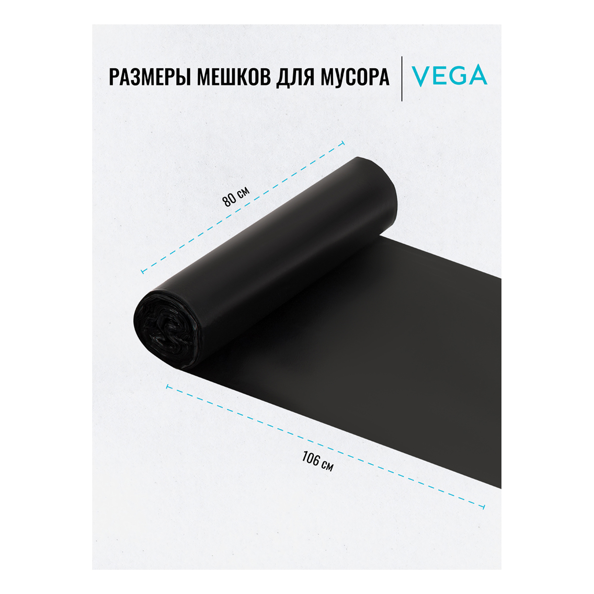 Мешки для мусора VEGA производятся из полиэтилена высокого давления (ПВД). Мешки объемом 160 литров размера 80*106 см плотностью 20 мкм используются для хозяйственных, промышленных нужд. В рулоне 10 штук.