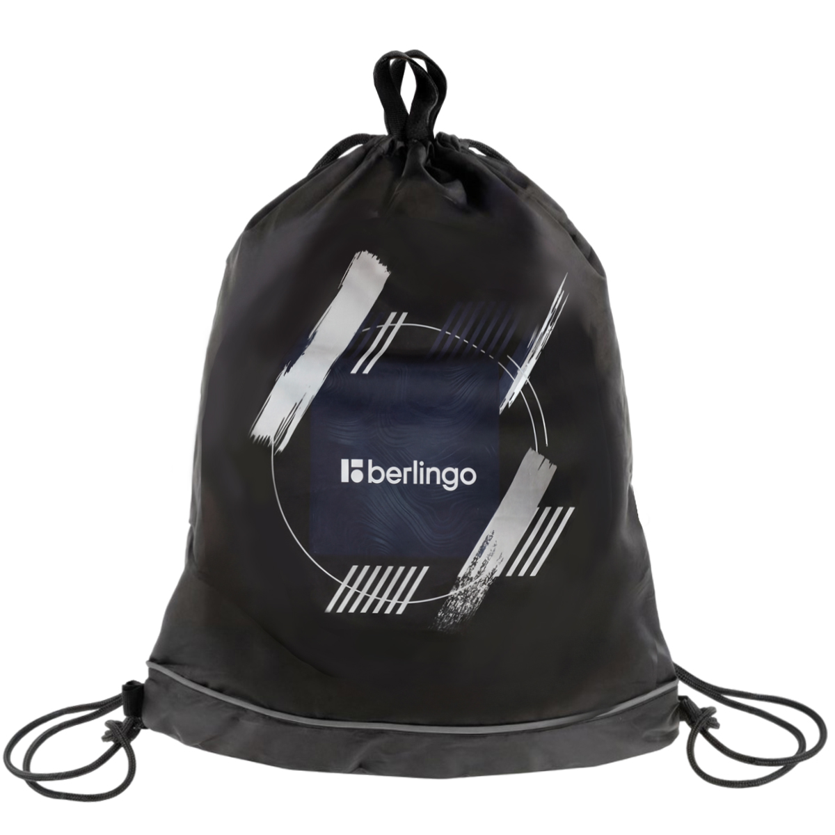 Мешок для обуви 1 отделение Berlingo "Shift", 400*480 мм, расширяющееся дно,светоотражающая лента, карман на молнии, полиэстер, черный