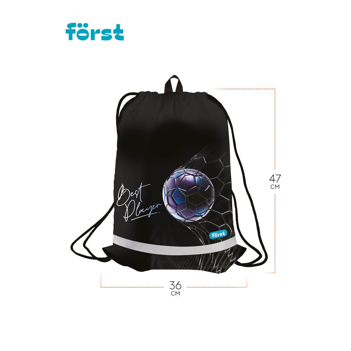Мешок для обуви Först Goal с широкими шнурками, светоотражающей полосой и вентиляционной сеточкой сзади. Размер изделия 470*360 мм. Изготовлен из прочного полиэстера. Благодаря петле мешок удобно вешать. Подходит как для обуви, так и для спортивной формы.