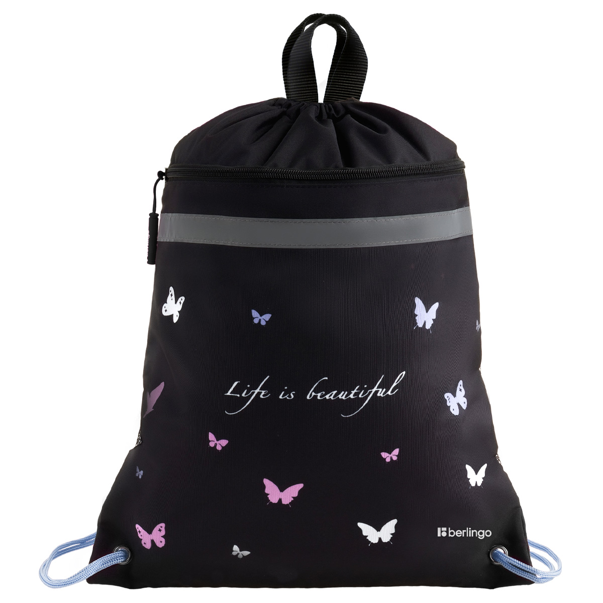 Мешок для обуви 1 отделение Berlingo "Life is Beautiful", 360*460мм, вентиляционная сеточка , светоотражающая лента, карман на молнии