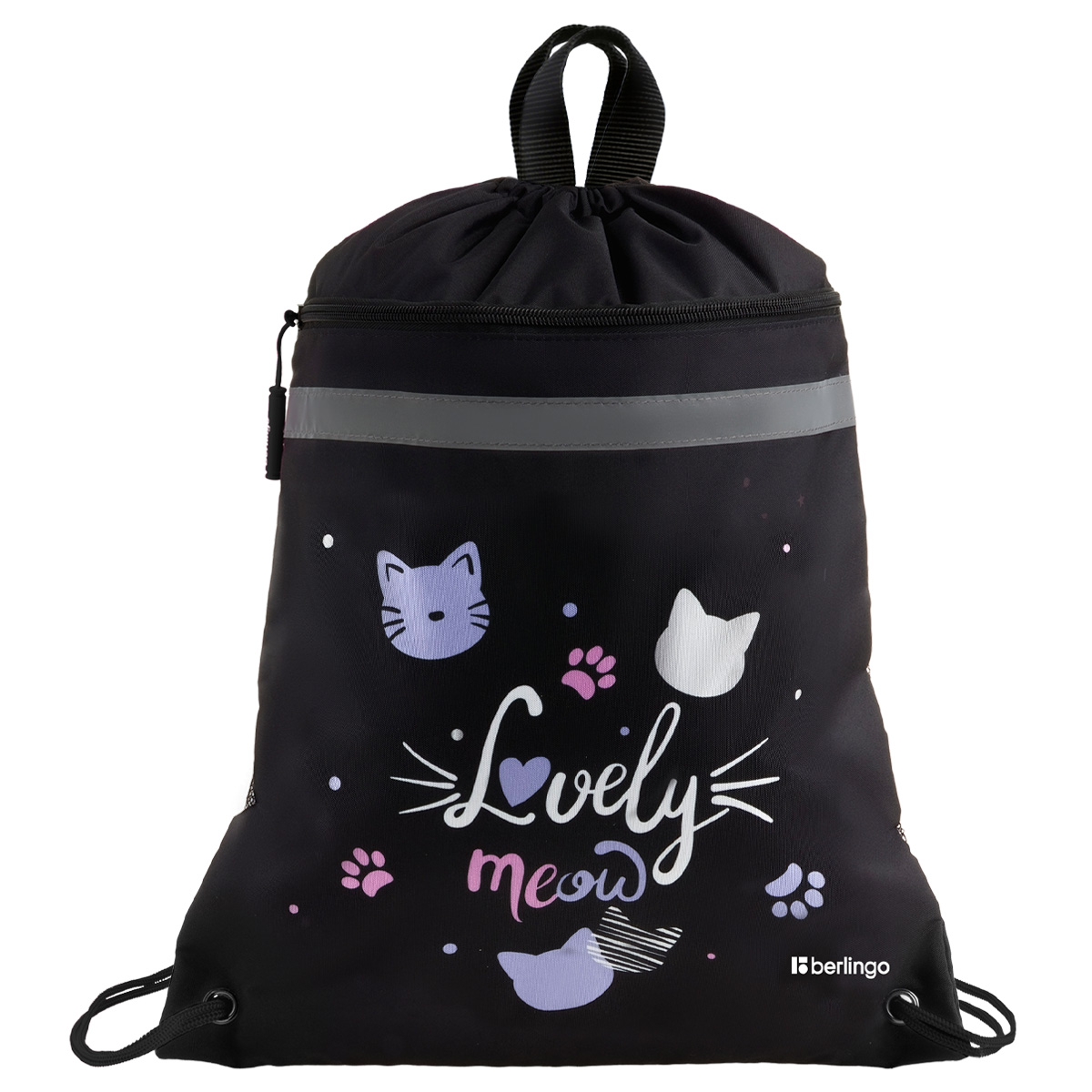 Мешок для обуви 1 отделение Berlingo "Lovely Meow", 360*460мм, вентиляционная сеточка , светоотражающая лента, карман на молнии