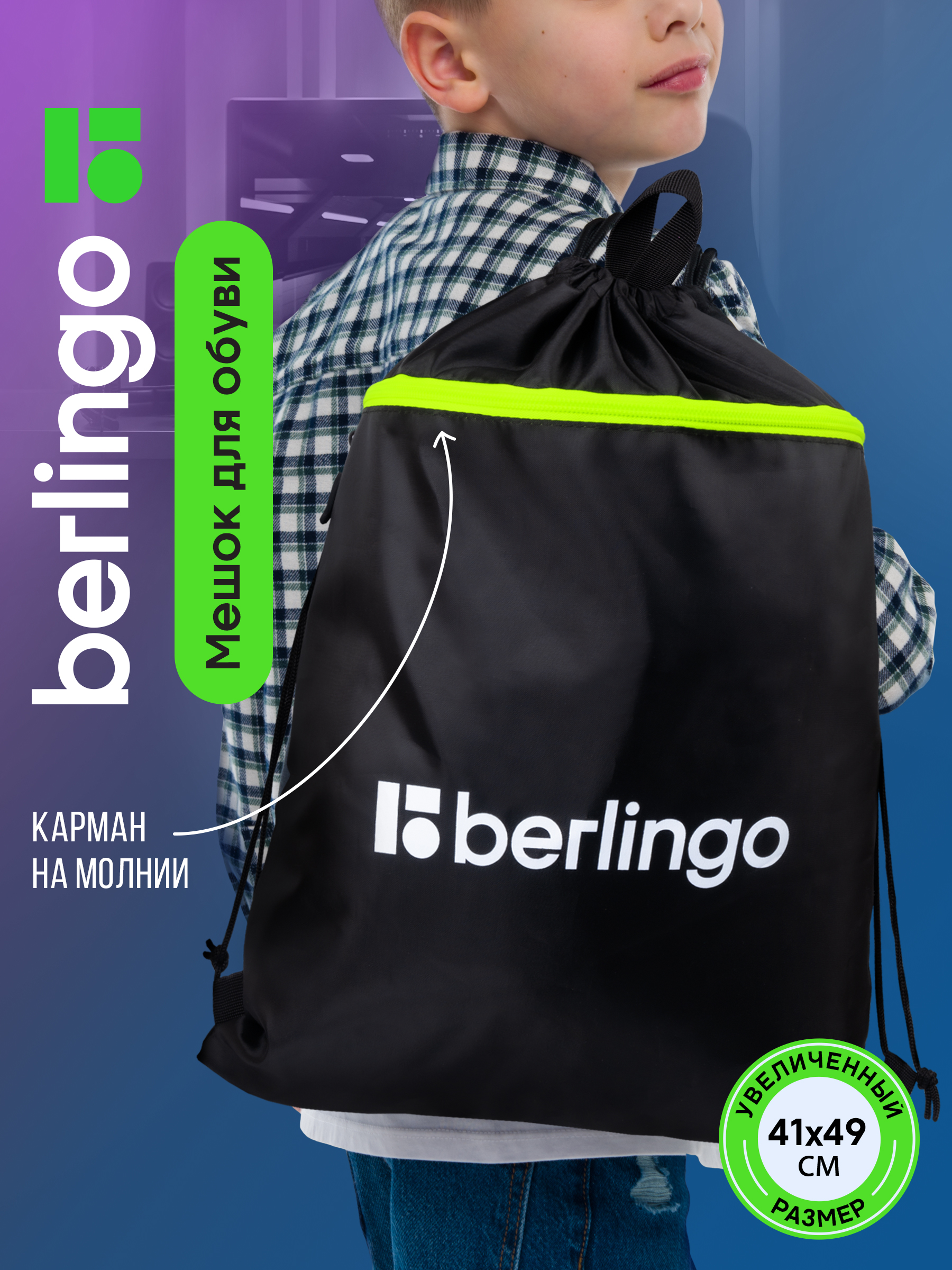 Мешок для обуви 1 отделение Berlingo "Black and green", 490*410мм, вентиляционная сеточка, карман на молнии