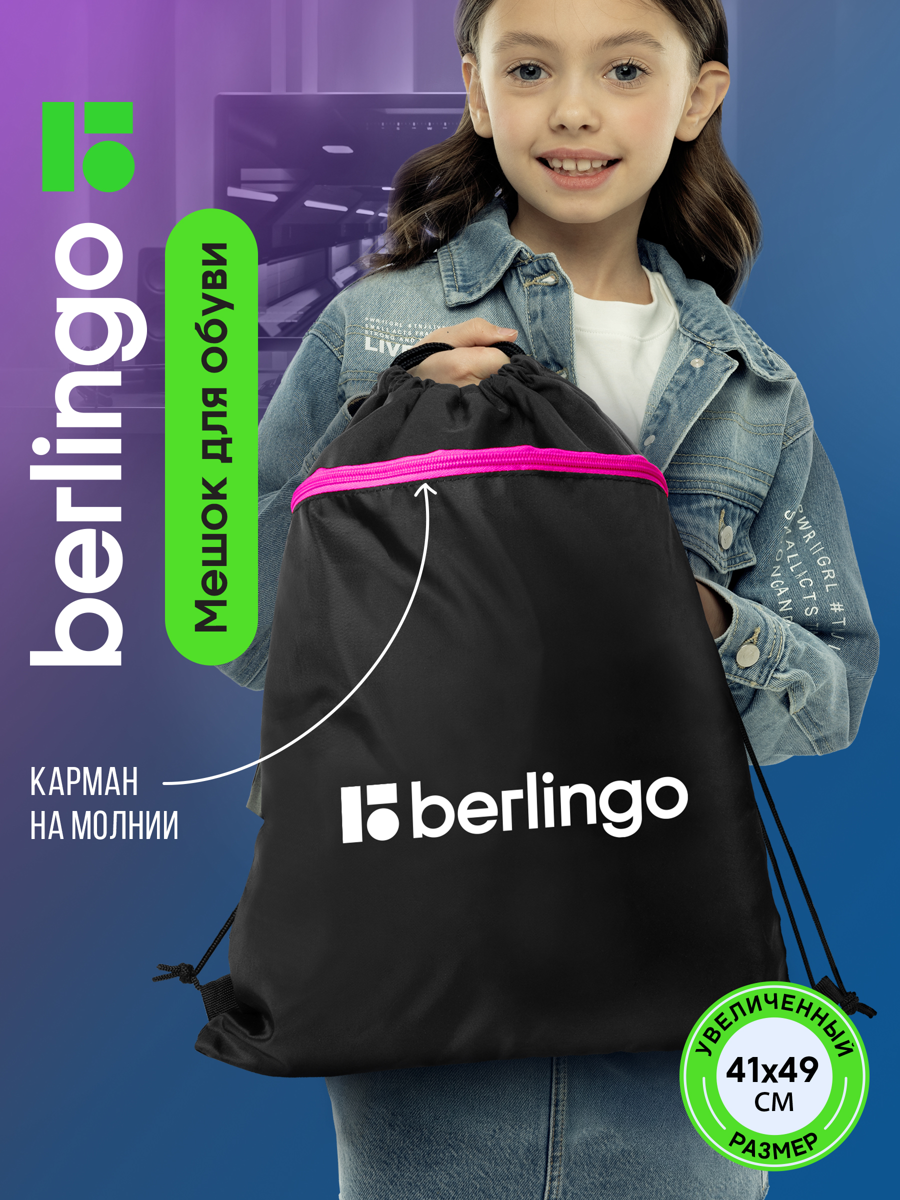 Мешок для обуви 1 отделение Berlingo "Black and pink", 490*410мм, вентиляционная сеточка, карман на молнии
