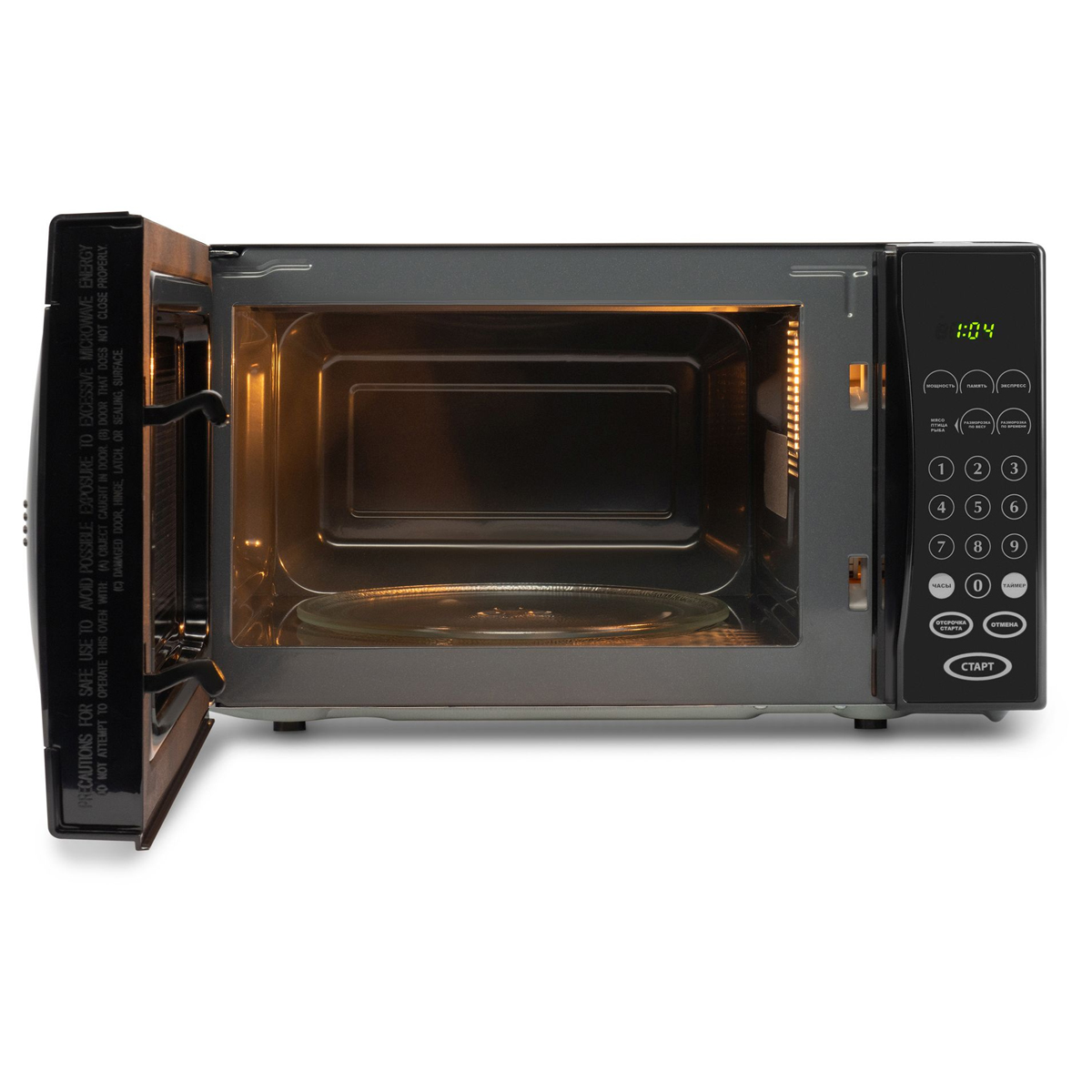 Микроволновая печь BRASSON MW2390D-6BL, 23 л, 900 Вт, сенсорное управление, дисплей, таймер, 6 АВТО ПРОГРАММ, черная, 454980