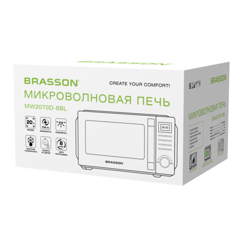Микроволновая печь BRASSON MW2070D-8BL – идеальное сочетание надежности и стиля. Компактная и мощная печь точно порадует разнообразным функционалом и простым управлением.