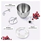 Форма насадок и чаши подобраны так, что почти при любом количестве продуктов насадка качественно их перемешает. Чаша ёмкостью 7 л изготовлена из нержавеющей стали, она прочная и в ней можно смешивать даже горячие ингредиенты. Она укомплектована защитной крышкой с загрузочным отверстием, через которое можно добавлять ингредиенты прямо во время работы. Все комплектующие легко снимаются и очищаются.