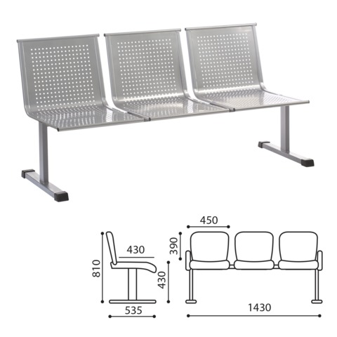 Кресло для посетителей трехсекционное "Стайл", цвет серебристый