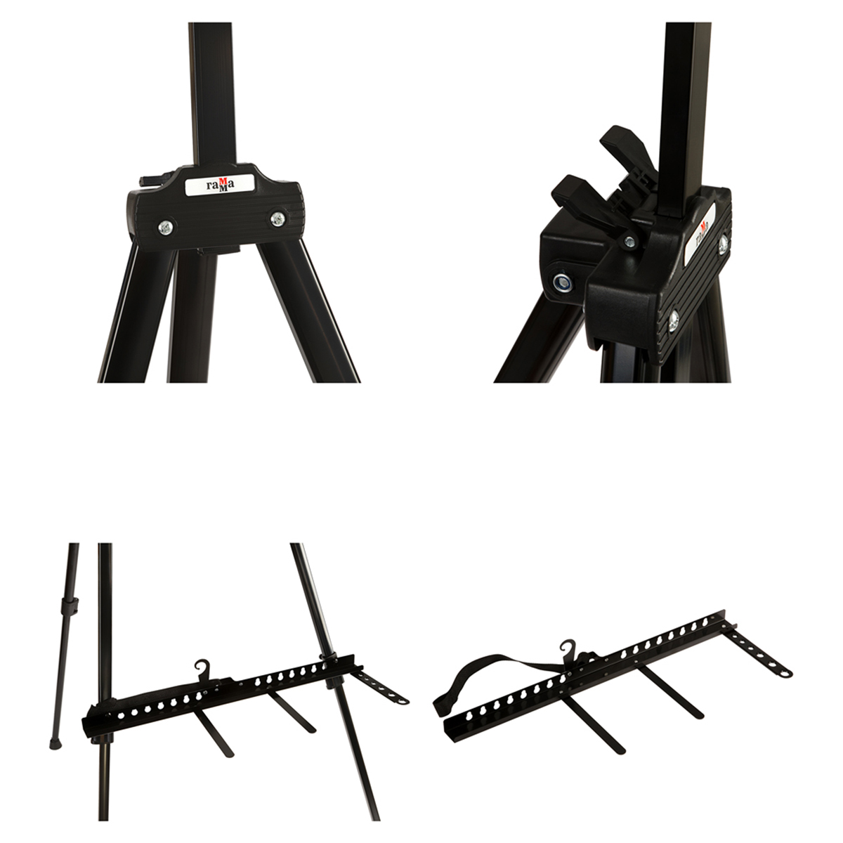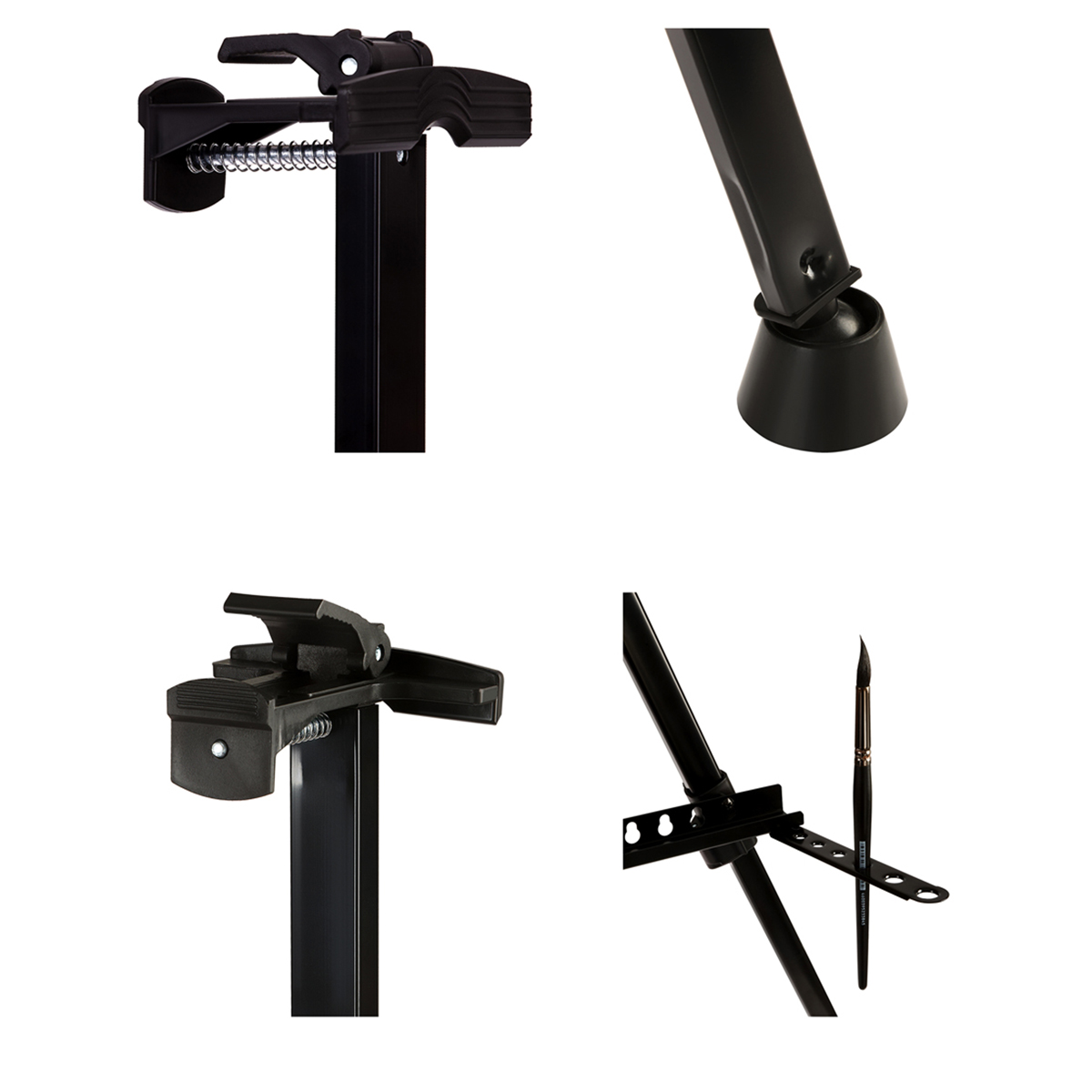 Мольберт оснащён полкой для установки холста и держателем для кистей. Телескопические ножки легко раскладываются и надёжно фиксируются, пластиковые опоры обеспечивают устойчивость даже на неровной поверхности. За мольбертом удобно работать и сидя, и стоя. Изготовлен из алюминия. Удобно хранить в сложенном виде. Чехол для бережного хранения и удобной транспортировки — в комплекте.