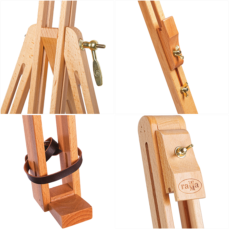Лёгкий, компактный мольберт оснащён поворотной мачтой, которую можно трансформировать в горизонтальное положение. Мольберт изготовлен из лакированного бука. Универсальная модель: холст большого формата можно поместить на регулируемые подставки на ножках, небольшие форматы — на нижний фиксатор. Резиновые накладки на ножках обеспечивают устойчивость и препятствуют скольжению. Имеет складную конструкцию