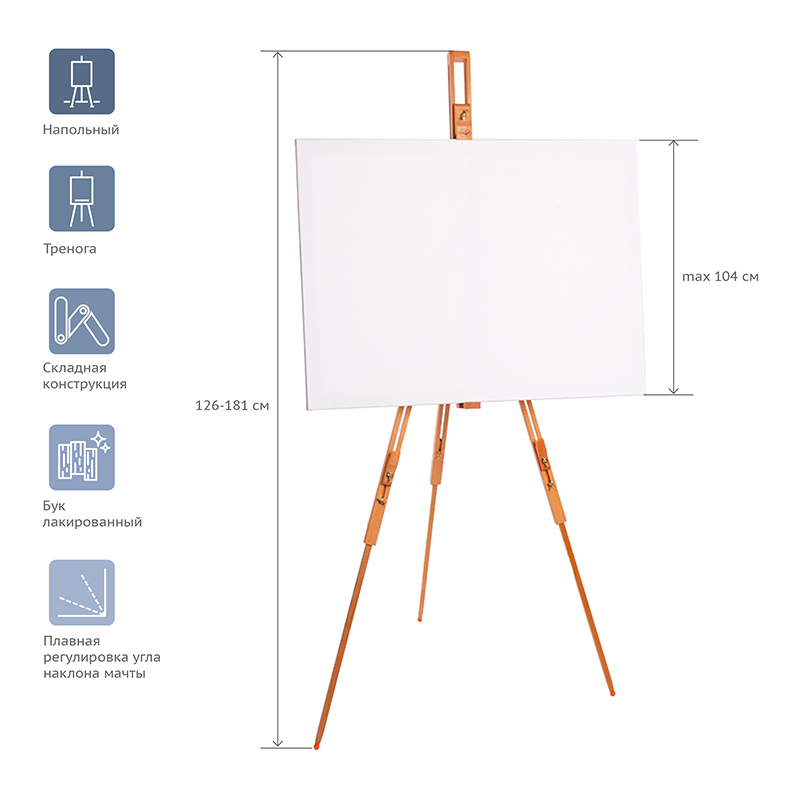 • Высота мольберта: 126(181) см;