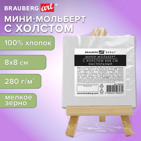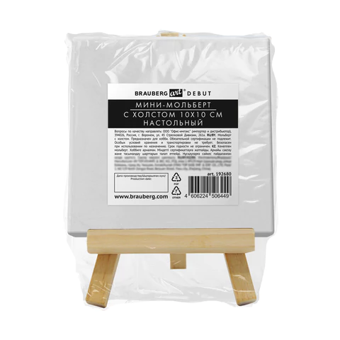 Настольный мини-мольберт с холстом 10*10 см BRAUBERG ART DEBUT, сосна, хлопок, 192680
