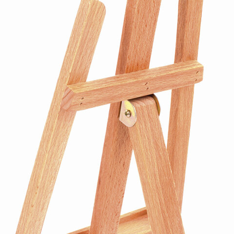 Изготовлен из натурального бука, пропитанного маслом. Мольберт настольный прост в установке. Максимальная высота размещаемого холста - 30 см. Мачта неподвижная с фиксированным углом наклона.