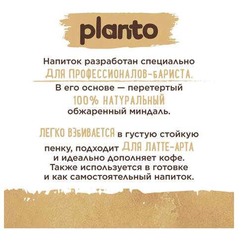 Миндальный напиток PLANTO Barista "Almond" разработан совместно с бариста специально для профессионалов и истинных кофеманов. 100% растительная основа напитка.