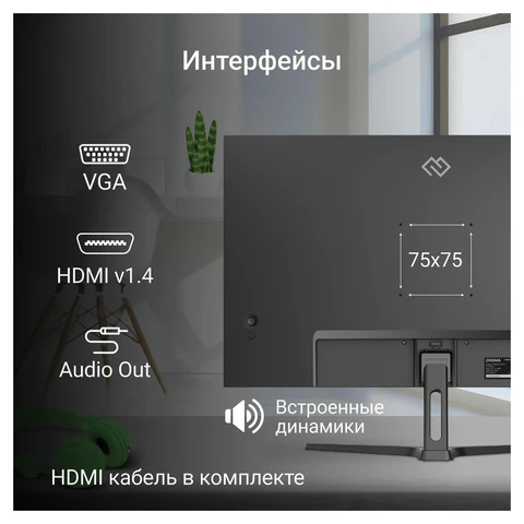 Удобная подставка с регулировкой наклона –5°…+20° для индивидуального комфорта. Поддержка крепления VESA 75?75 мм — легко разместите на мониторном держателе или в эргономичной много экранированной конфигурации.