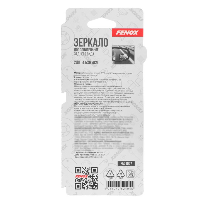 Зеркало дополнительное заднего вида FENOX, 2 шт, FAO1009