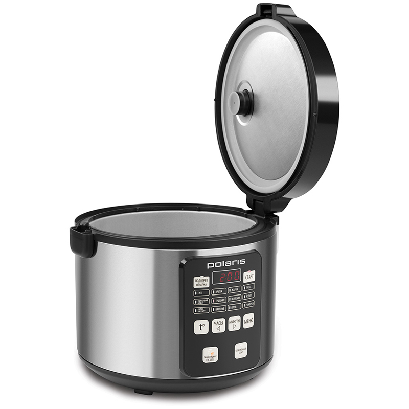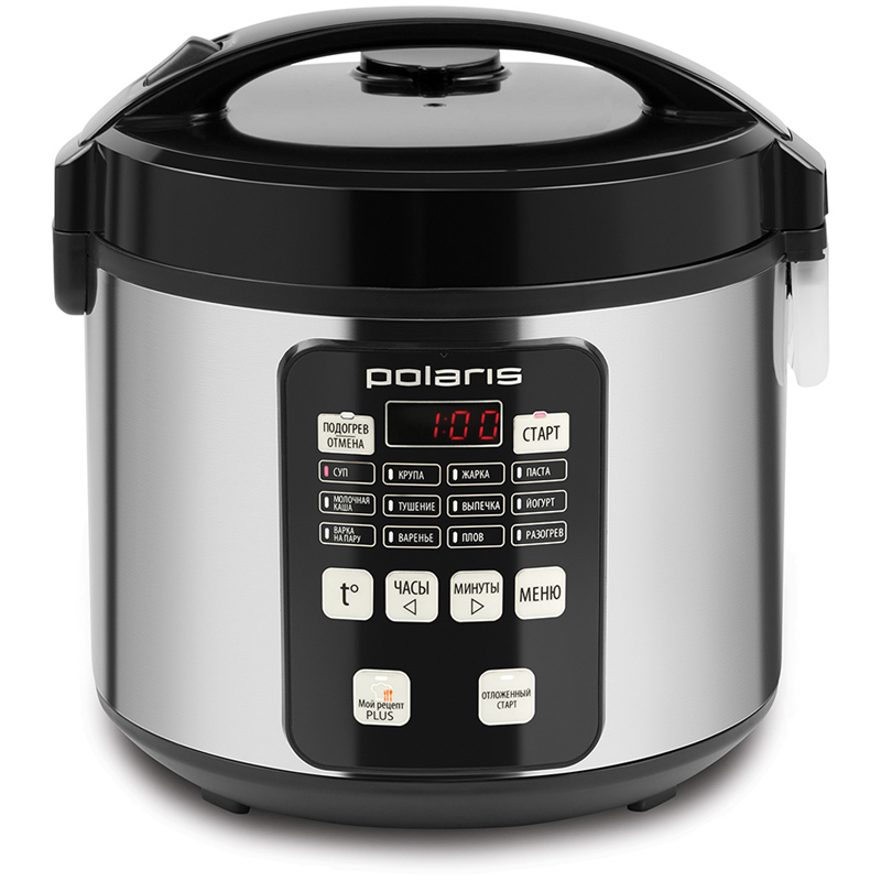 Режимы работы: Мой рецепт Plus, Суп, Крупа, Жарка, Паста, Молочная каша, Тушение, Выпечка, Йогурт, Варка на пару, Варенье, Плов, Разогрев.<br/>Многофункциональный дисплей.<br/>Поддержание температуры 24 часа.<br/>Таймер отсрочки до 24 часов позволяет приготовить еду к назначенному времени.<br/>Сохранение программы при сбое электропитания - 20 минут.<br/>Объем чаши 5 л позволяет приготовить блюдо до 10 порций.<br/>Антипригарное покрытие внутренней чаши - прочное, устойчивое к царапинам, безопасное для здоровья.<br/>Съемный шнур.<br/>Аксессуары:<br/>- столовая ложка<br/>- плоская ложка<br/>- мерная чашка<br/>- контейнер пароварка<br/>Книга рецептов в подарок.