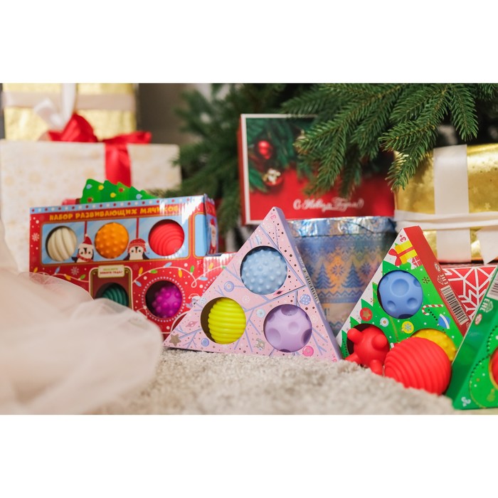 Подарочный набор развивающих массажных мячиков Крошка Я «Снеговичок», 3 шт., новогодняя подарочная упаковка