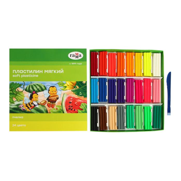 Пластилин мягкий (восковой), 24 цветов, 360 г, Гамма "Пчелка", со стеком