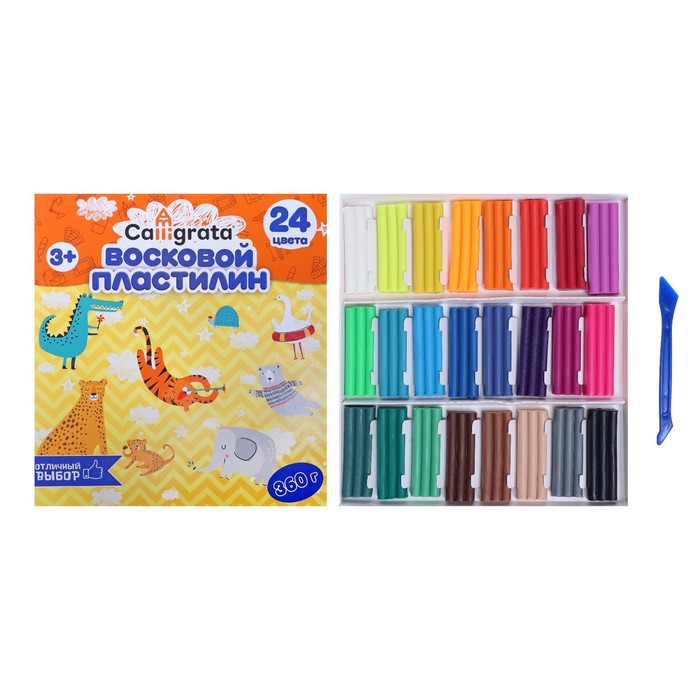 Пластилин мягкий (восковой) Calligrata, 24 цвета, 360 г