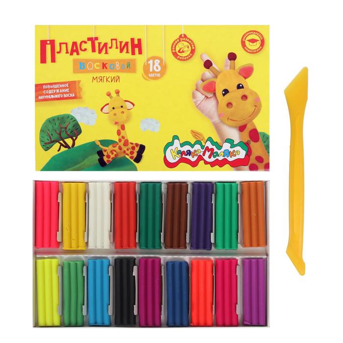 Пластилин восковой 18 цветов по 15 г "Каляка-Маляка", со стеком
