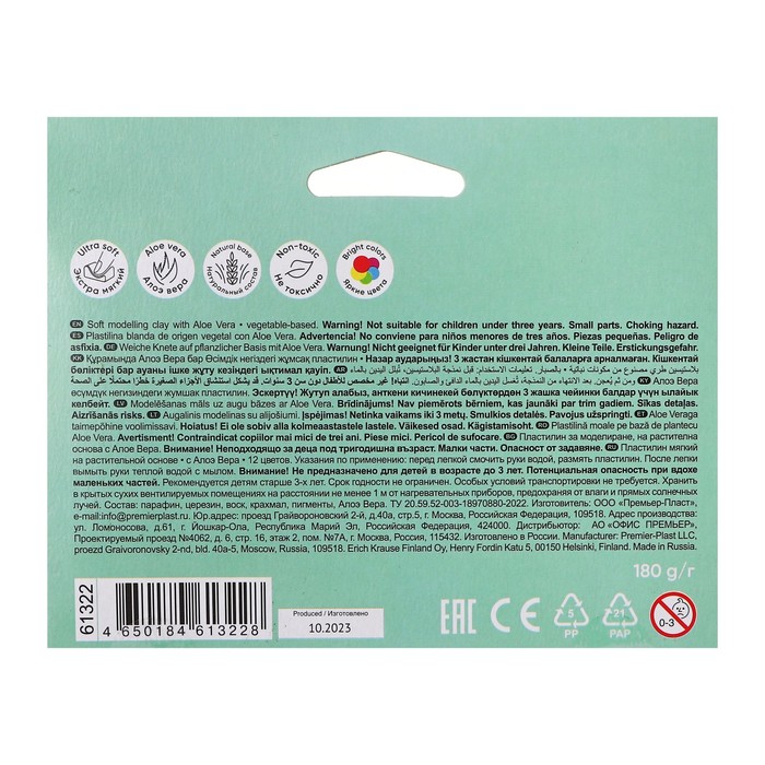Пластилин мягкий на восковой основе ErichKrause "Baby" 18 цветов, со стеком, 234 г, в коробке