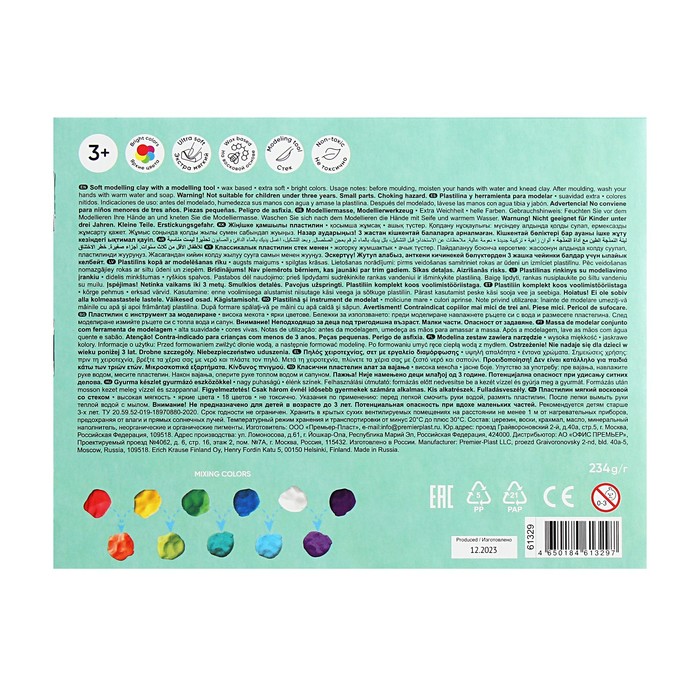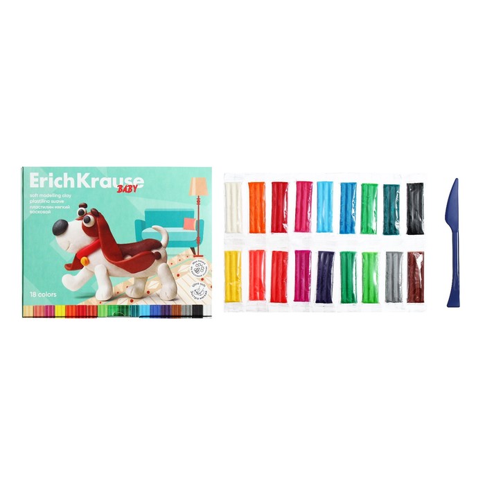 Пластилин мягкий 12 цветов, 180 г, ErichKrause "Baby", на растительно основе, с Алоэ Вера , европодвес