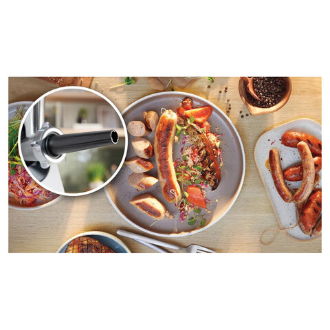Создайте идеальные условия для приготовления домашнего фарша, колбас, кеббе и других блюд с мясорубкой BOSCH MFWS420W — мощным и универсальным решением для вашей кухни!