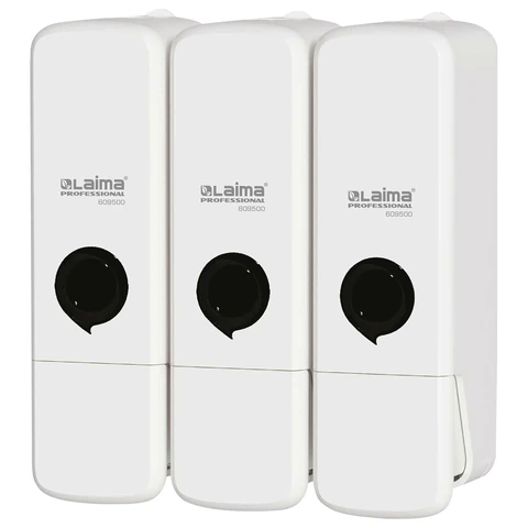 Дозатор тройной 3 х 0,3 л для жидкого мыла/шампуня/геля LAIMA SUPER, НАЛИВНОЙ, белый, 609500