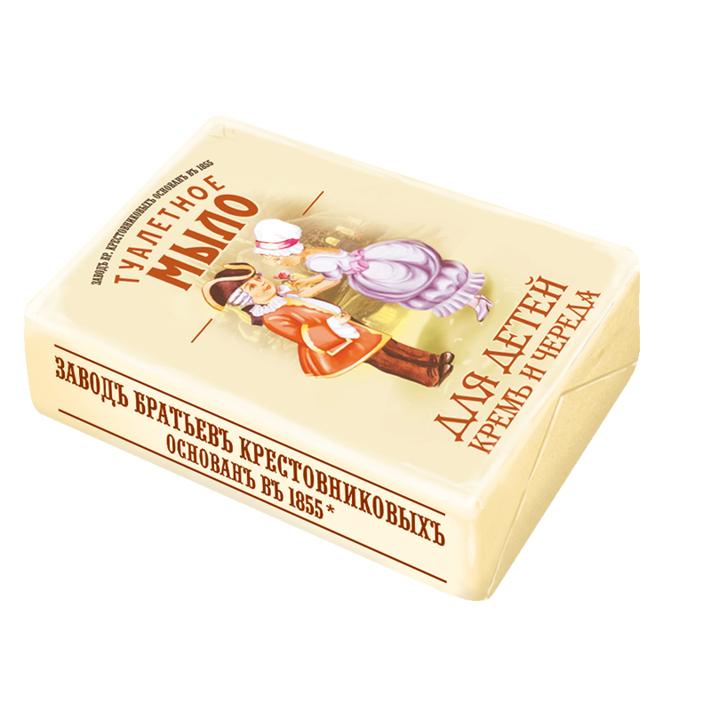 Мыло туалетное Завод братьев Крестовниковых детское "Крем и череда", бум. обертка, 100г