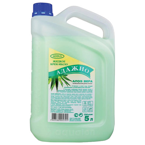 Мыло-крем «Адажио. Алоэ Вера, перламутровое антибактериальное», мягко очищает кожу и защищает от воздействия вредных бактерий. Подходит для мытья рук и тела.